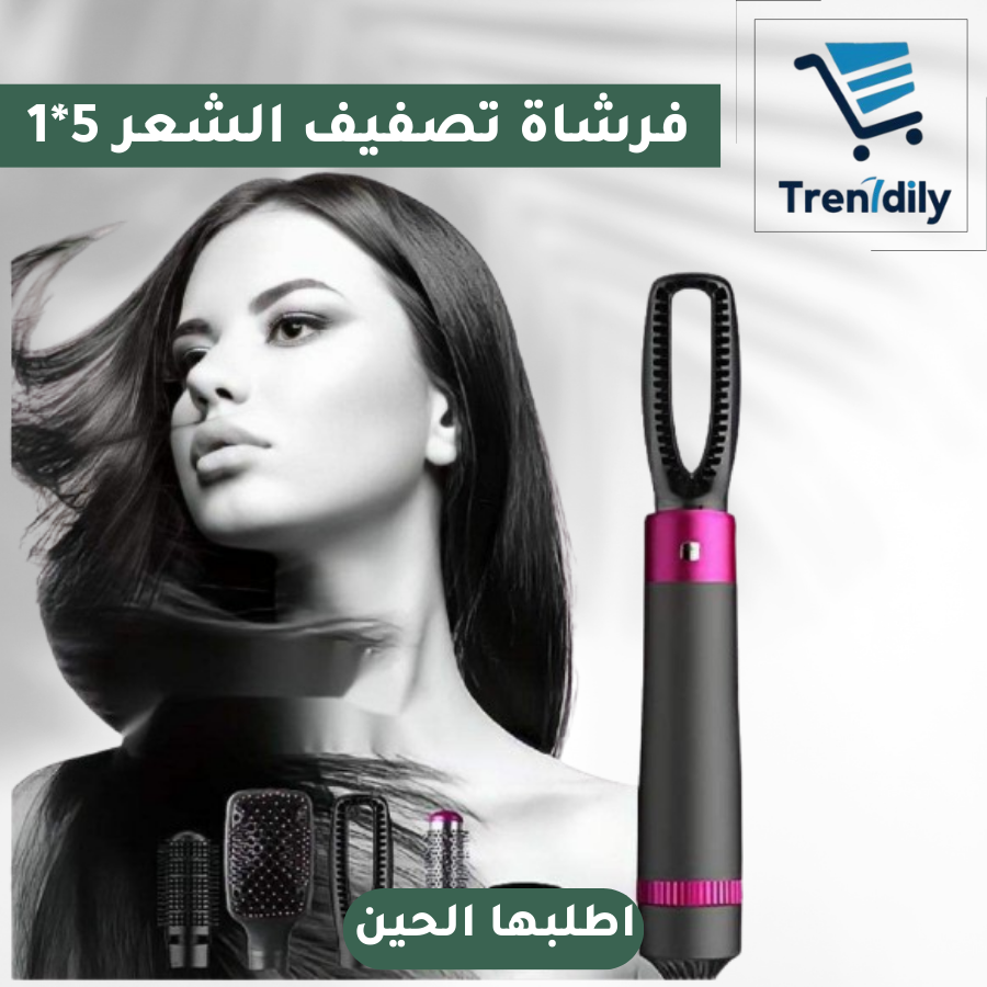 فرشاة الهواء الساخن 5 في 1 لتصفيف الشعر بسهولة، تجفيف، تمليس، تجعيد، تكثيف وتدليك بفروة الرأس، تقنية أيونية لنتائج ناعمة ولامعة.
