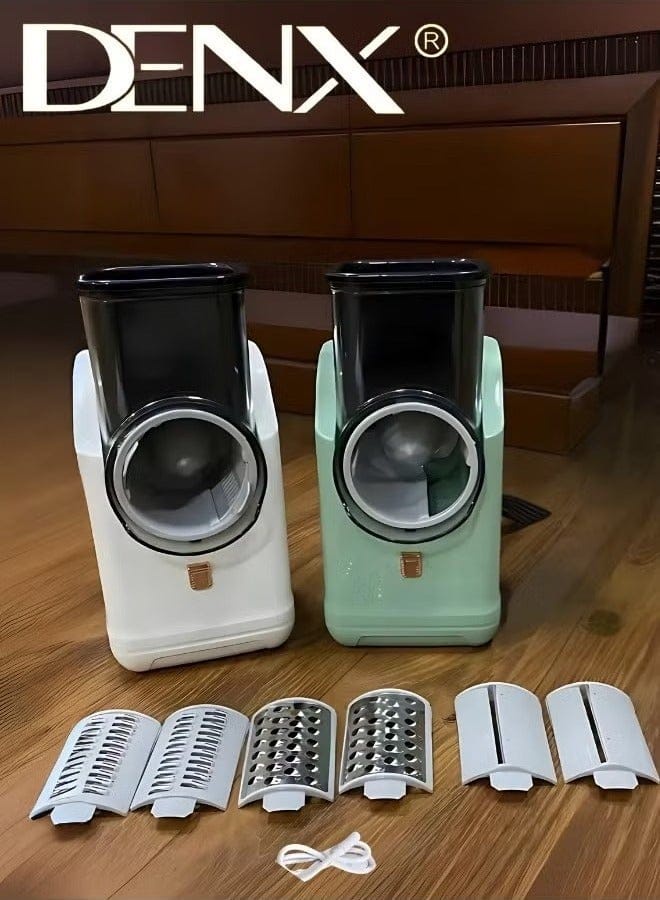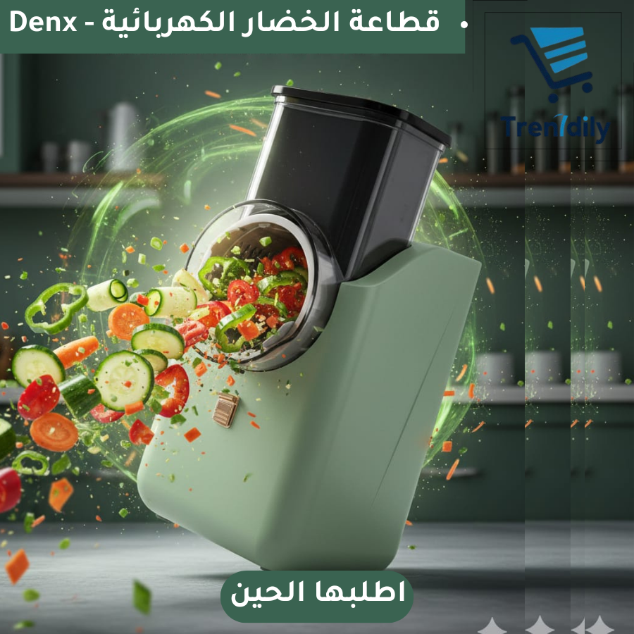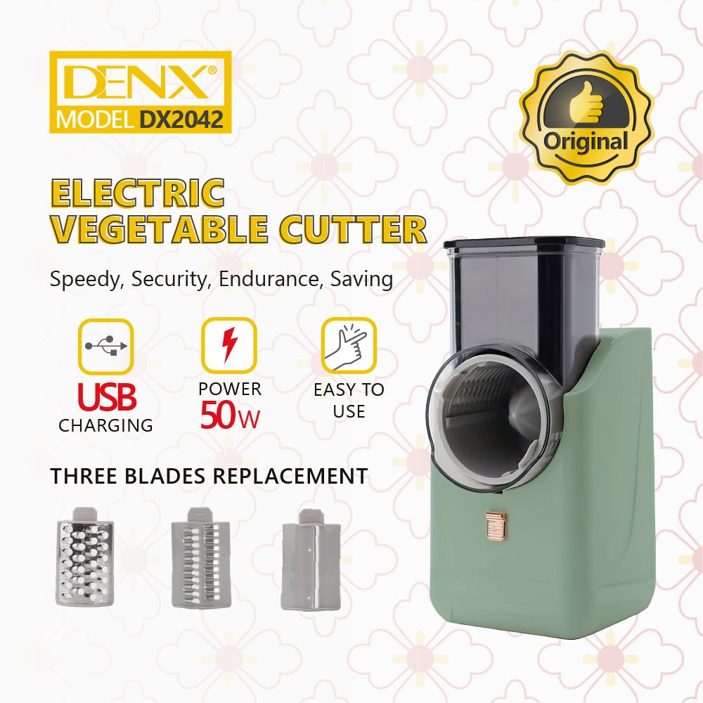 قطاعة خضروات كهربائية من DENX بقوة 50 واط، تشغيل لمسة واحدة، شحن USB، تقطّع الخضار بسرعة وسهولة، تصميم مدمج مثالي للمطبخ العصري.