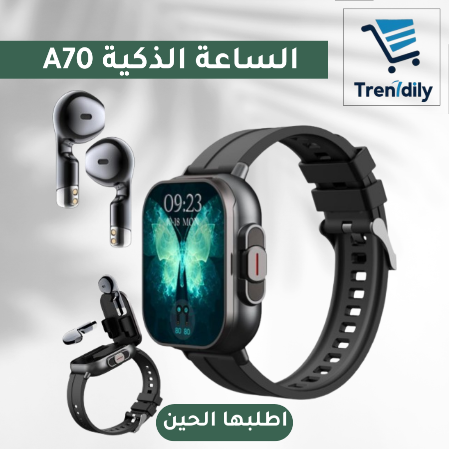 ساعة A70 الذكية بشاشة لمس كاملة مع سماعة ايريود ، تتبع للنوم، إشعارات المكالمات والرسائل، وتصميم أنيق يناسب الجميع، مثالية للياقة والحياة اليومية.